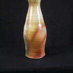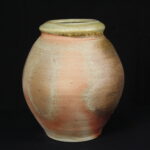It is left to the flames, licking, flashing and depositing fly ash during the three-day firing, to leave their mark and decorate the pot surfaces. Almost a day into the firing, when the temperature reaches about 1000 oC, the chimney struggles to pull in sufficient air for full and clean combustion each time the firebox is stoked with wood. The mysteries of this ‘reduction’ atmosphere bring out a rich palette of red through purple, orange and browns in the clay whilst carbon trapping gives greys and black and melting ash deposits fuse to form a glaze.